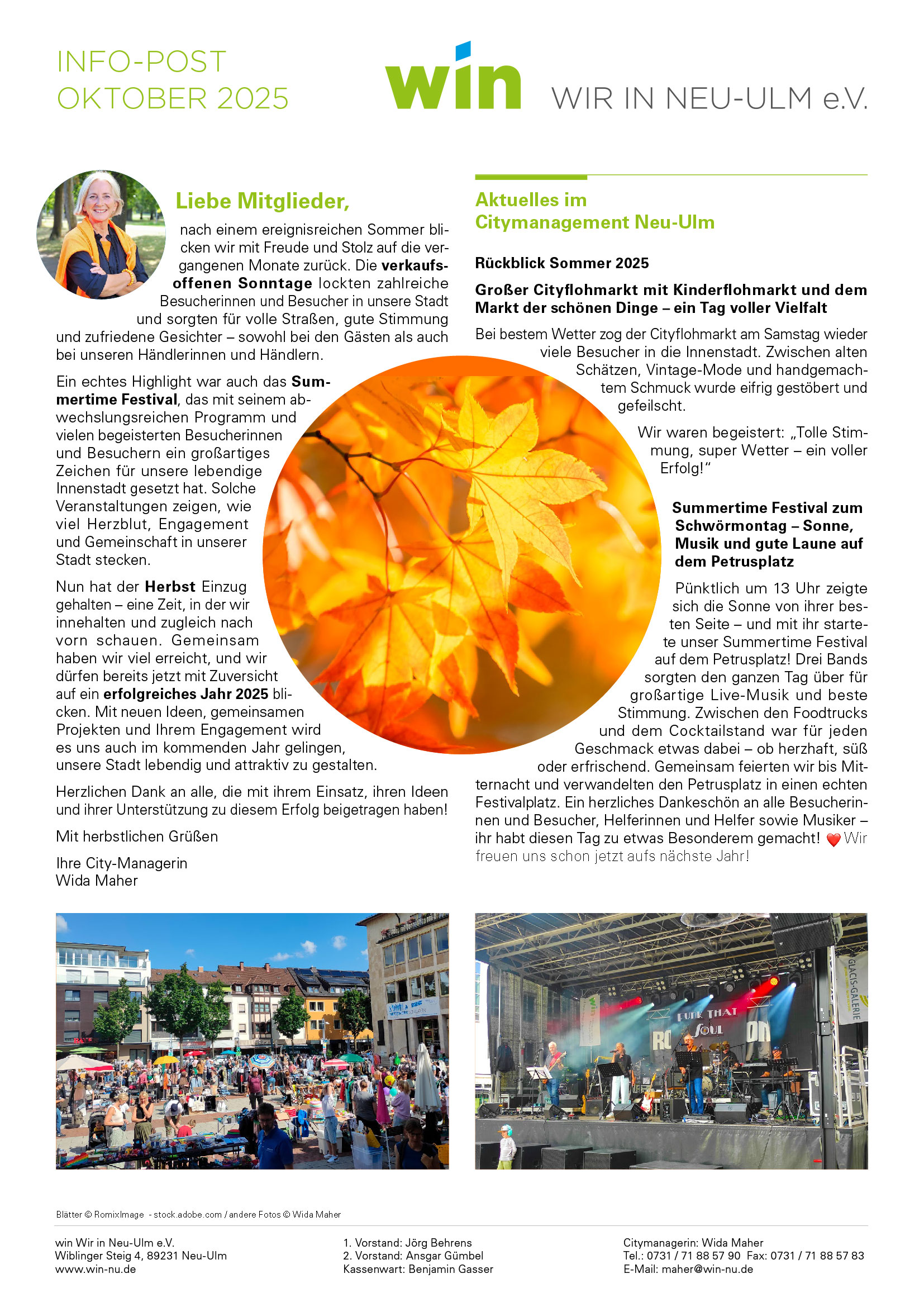 Wir bieten jedem neuen Mitglied an, sich durch die kostenlose Beilage eines Flyers in der Info-Post vorzustellen. Außerdem werden Angebote, bei denen speziell Mitglieder einen Vorteil haben, kostenlos veröffentlicht.
